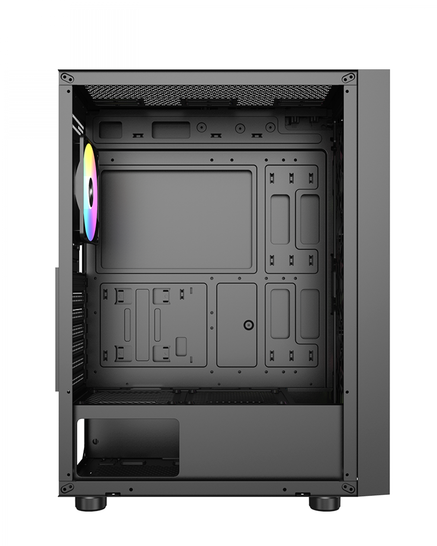 El gabinete viene equipado con 3 ventiladores estáticos RGB LED de 120mm en la parte frontal y 1 en la parte trasera, que no solo mantienen una temperatura óptima, sino que también añaden un toque de estilo y personalidad a tu configuración.