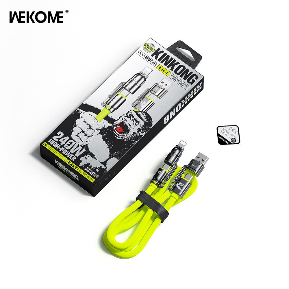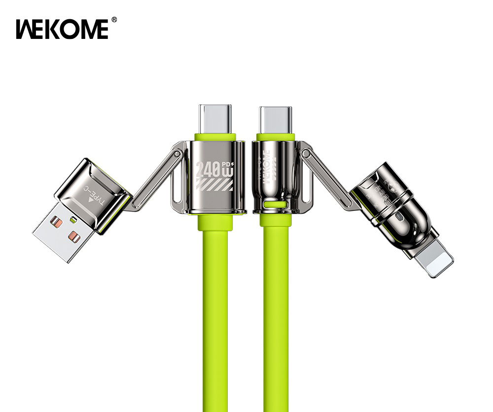 ✅ Resumen: El cable WDC-51 de WEKOME es una solución versátil 4-en-1 para carga rápida y transferencia de datos, con salida PD de hasta 240 W en modo USB-C a USB-C, diseño durable y compatibilidad con múltiples dispositivos (Android, iPhone).